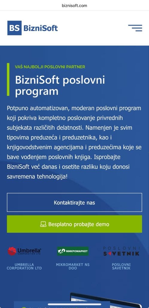 Potpuno automatizovan, moderan poslovni program koji pokriva kompletno poslovanje privrednih subjekata različitih delatnosti. Namenjen je svim tipovima preduzeća i preduzetnika, kao i knjigovodstvenim agencijama i preduzećima koje se bave vođenjem poslovnih knjiga. Isprobajte BizniSoft već danas i osetite razliku koju donosi savremena tehnologija!